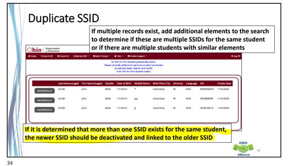 than one SSID has been reported to EMIS by PK-12 schools, the newly enrolling district should consider
