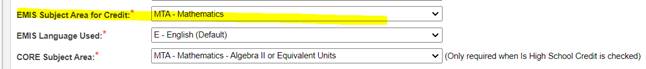 EMIS Subject Area for Credit vs. CORE Subject Area