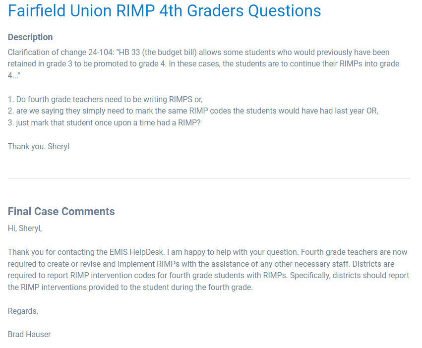 Here is an ODE ticket regarding the RIMPS