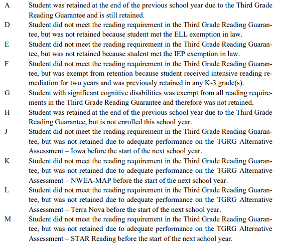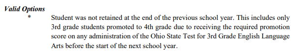 I wanted to pass along some information in reference to the Retention/Promotion reporting. Third grade students who did not score proficient (700) on their 3rd Grade ELA tests are to be reported with a retention reason...