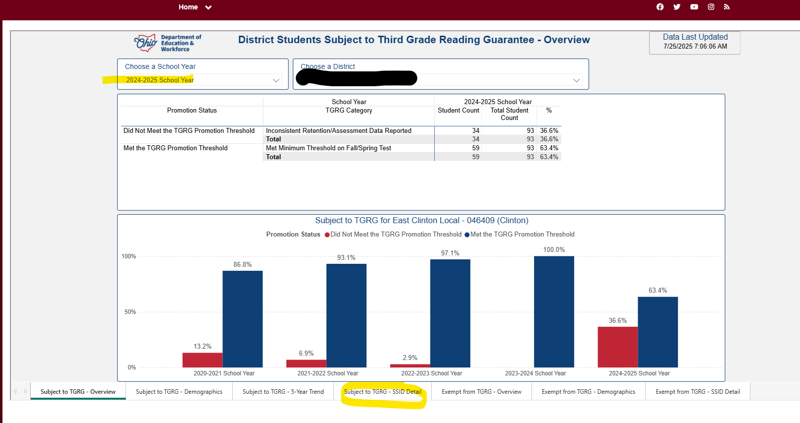 Once in the SDC click on Improving At-Risk K-3 Readers; when that opens up click on District Third Grade Reading Guarantee (if you just have one elementary building that houses the 3rd grade students you can click on School Third Grade Reading Guarantee). Once that opens up just choose the 2024/2025 school year