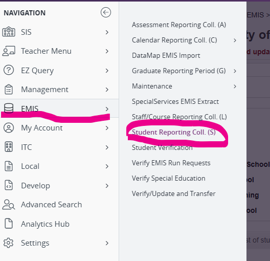 I wanted to send out an email now that March 31st has passed us. You can now run your Majority of Attendance IRN for the school year. If you are a Student Information district you will want to be at the district level and under the EMIS Navigation Tool, you will want to select Student Reporting Collection...