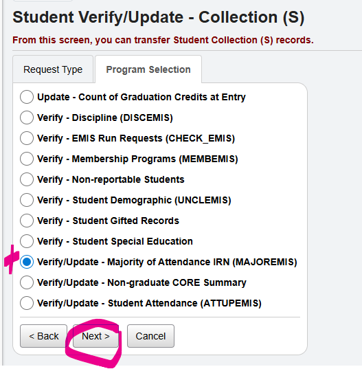Click on Verify/Update - Majority of Attendance IRN (MAJOREMIS) and hit Next