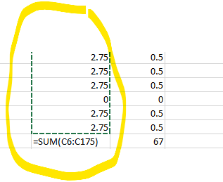 Once that is done you will want to make sure that only the days that the pre-school is in session for the building are reported as hours (if your district starts PS students later than the other students you will need to 0 (zero) out the hours for the first couple of days until the ps students start. In my example the district started school on August 21st but the PS did not start until August 25th so I had to put in 0.00 for the 21st and 22nd. After the student's last day of school there is a total of hours .... That field will need to be corrected as it was based off of the original value from column C. All you need to do is delete the information in that cell and then click your AutoSum button