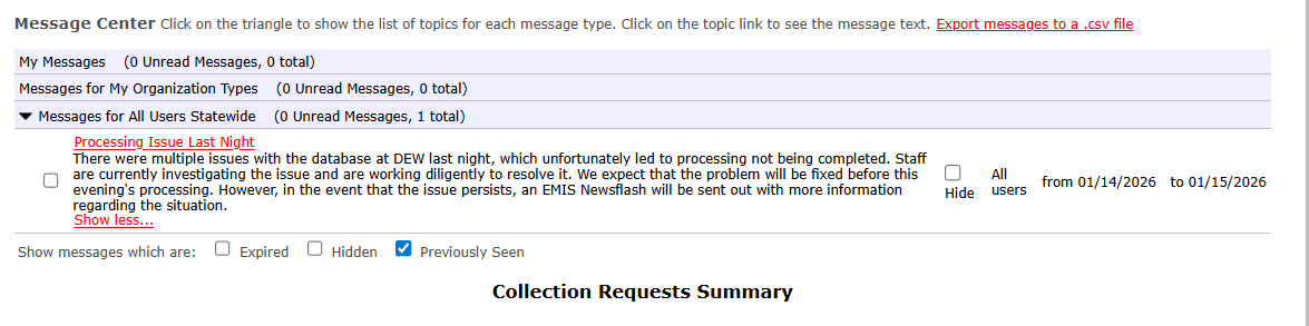 When you are in the Data Collector up at the top is the Message Center and there should be a message for you that looks something like this: