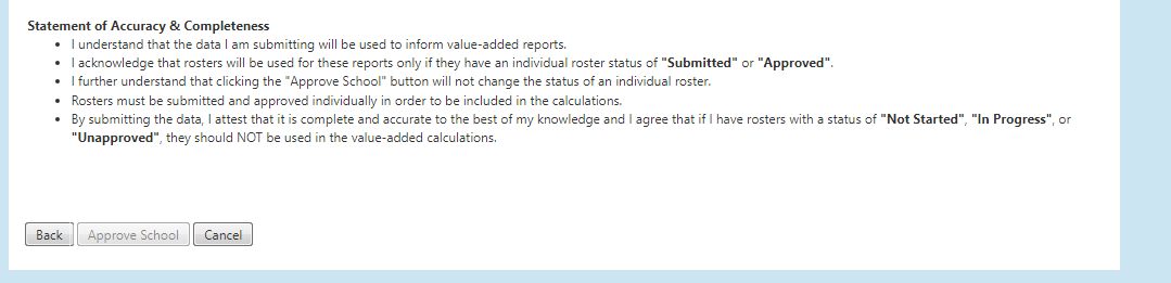 Once you have clicked the Approve School button, you should see the "Approved on" information appear in the upper right portion of your screen and the Approve School button turn grey as shown below. This is your indication that you have completed Roster Verification for the 21-22 School Year.