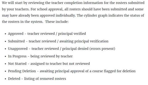 Good afternoon Roster Verification Administrators and Principals,