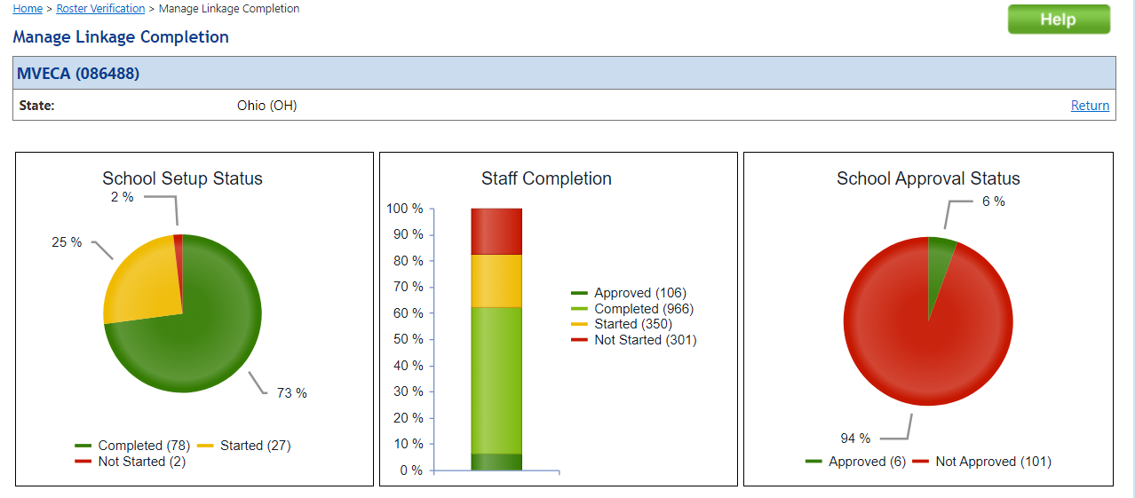 Red - There are 301 teachers that have not yet begun to verify their rosters.