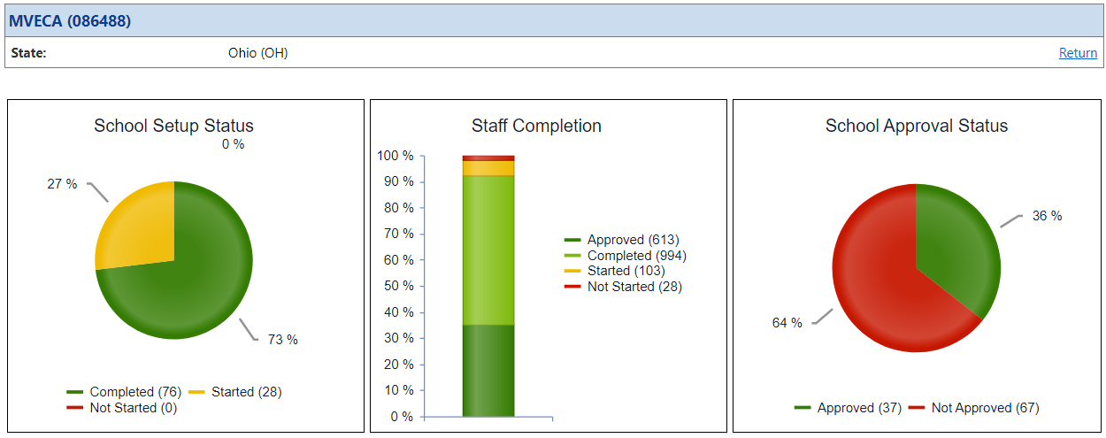 As a reminder, only those staff members with the Principal role within the application have the ability to click the Setup Complete button for their School Building. When the Principal clicks the Setup Complete button, all Rosters that have been Approved will be submitted for the building. Currently there are only 613 Approved for MVECA. 994 Rosters were Completed, but have not yet been Approved. The window for the entire Roster Verification process will close at the end of the day on Thursday, May 23rd.