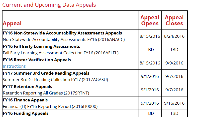 Just wanted to remind all that the appeal for the Non Statewide Accountabilty Assessments closes today.
