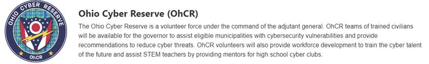 Subject: IMPORTANT: Ohio Cyber Reserve Seminar Series at MVECA