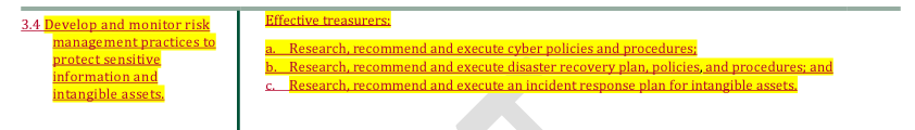 [Mail_treas] Treasurer Standards - Cyber, DR, IR Plans and Policies