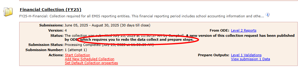**Also, if you submitted prior to 7/31/2025 you need to ensure you re-submitted your collection. All districts should see in the data collector a submission date after 7/31/2025.