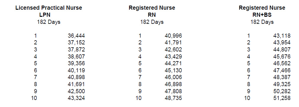 Good afternoon! If you have a salary schedule for a LPN or non-bachelor degree RN, can you please forward me a copy of your salary schedule? I appreciate any help you can provide.