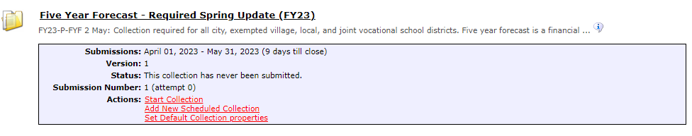 This is a reminder the 5 year forecast required Spring update is due by 5/31/2023. MVECA will convert the CSV files and upload the sequential files to the data collector for our districts. If you need us to convert your file please send a ticket/email to helpfiscal at mveca.org<mailto:helpfiscal at mveca.org>
