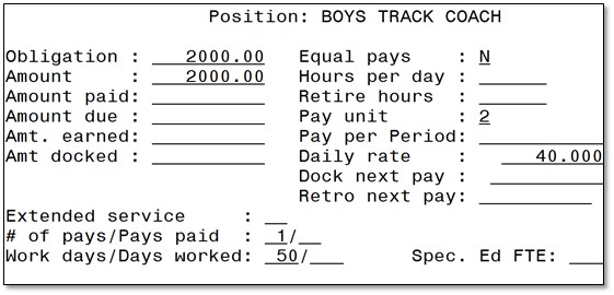 Please see the example below, a job is marked "Y" to equal pays and on the DEF calendar, the system will automatically insert "ACC" as the pay type into future or current pay. Therefore, no service hours or days can be populated on the report: