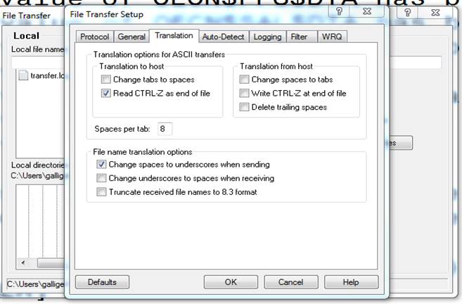 You may need to uncheck the "Delete Trailing Spaces" box before transferring your .seq files out of the payroll system. Please go to Setup and then the Translation Tab. Make sure the "Delete trailing spaces" in unchecked. This will allow the file to be in the correct format that is needed by eSERS.