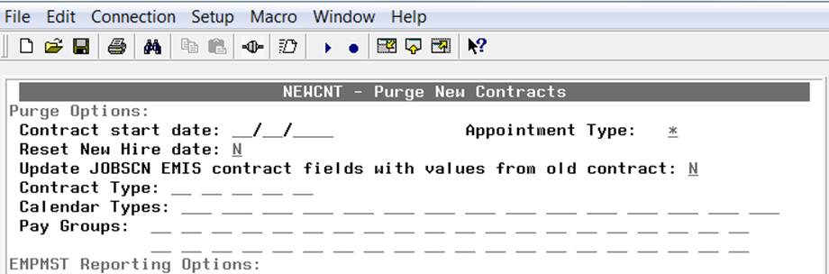 * The options to clear EMIS fields at NEWCNT/PURGE were removed. It's suggested to run MASCHG/MASEMIS before building new contracts, if needed.