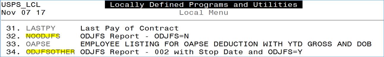 You can get to these reports by typing their name at the Menu prompt or you can go through the menus under USPS/USPS_LCL: