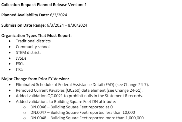 Also, the collection for the Financial H collection<https://education.ohio.gov/getattachment/Topics/Data/EMIS/EMIS-Documentation/EMIS-Release-Notes/EMIS-Release-Notes-FY24-H-Financial-v1.pdf.aspx?lang=en-US> opened yesterday, below are the key 2024 highlights: