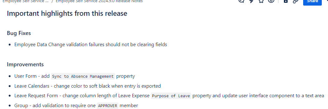 A new version (2024.9.0) of Employee Self Service is now available. Please review the release notes<https://mcoecn.atlassian.net/wiki/x/E4AuKg> for details.