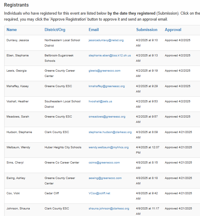 This is a reminder that the MVECA Fiscal team will be hosting a New Contract and USPS EMIS training/refresher next week on May 2nd starting at 9AM. Below are the current registration lists, please review these registrations and ensure you are registered if you would like to attend and that you have signed up for your preferred session (In-Person or WebEx).