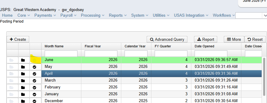 Go to Core/posting periods