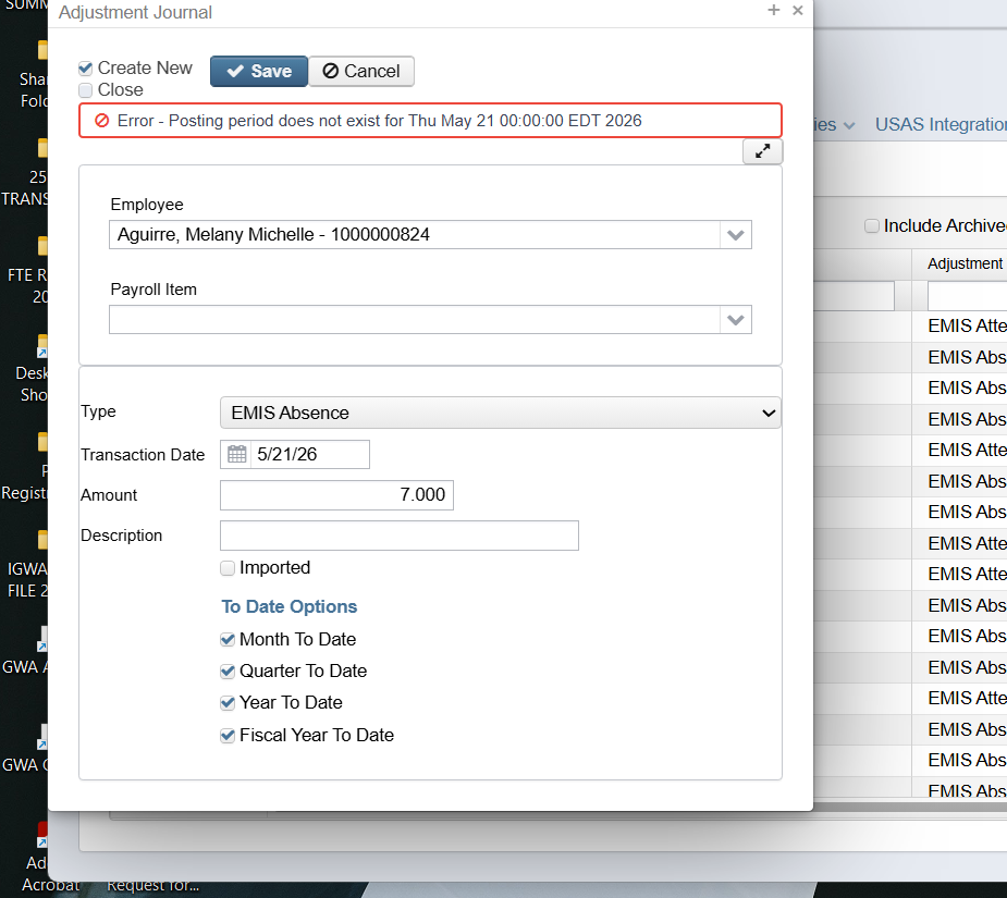 It is not allowing me to create May. Please advise.