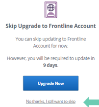 * If the user chooses not to create the Passport account, they will see a countdown telling them when the account must be created