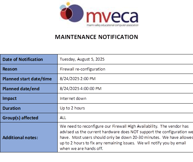[Tech-l] Network Maintenance Sunday 8/24/25 2PM - 4 PM